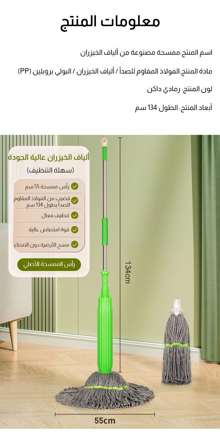 【تجفيف في ثانية واحدة】ممسحة دوارة ذاتية العصر مصنوعة من ألياف الخيزران